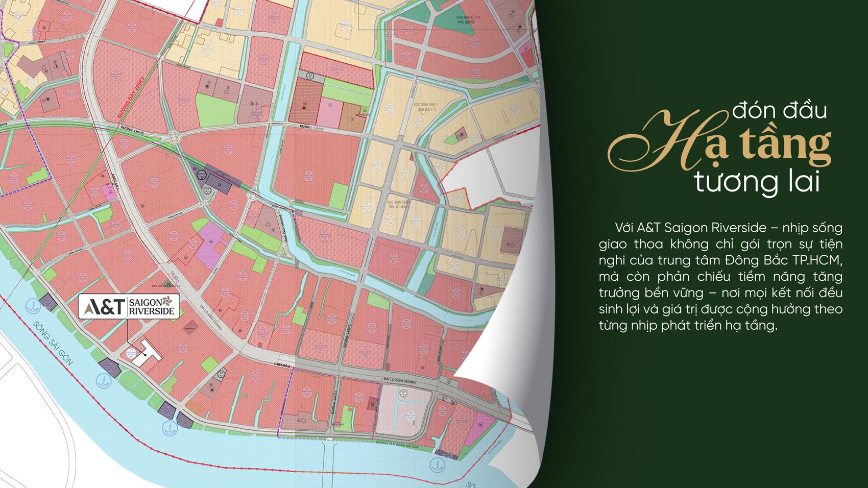 A&T Saigon Riverside – tọa lạc ngay cửa ngõ kết nối TP.HCM và Bình Dương, sát Quốc lộ 13 mở rộng 8 làn xe.